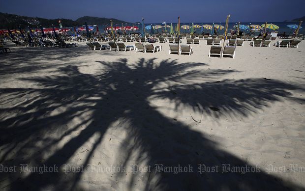 In this March 13, 2014 photo, tourists spend time on Patong Beach in Phuket province. (AP photo)