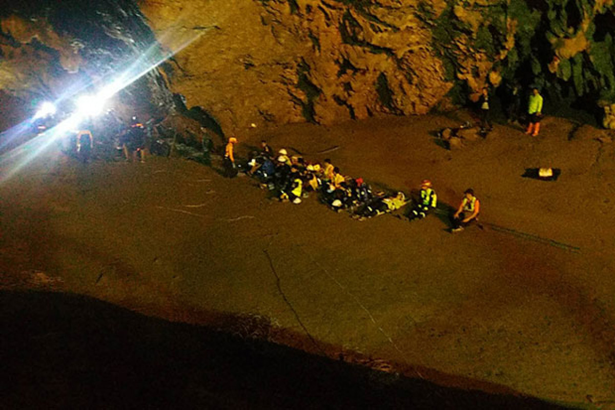 A video clip posted what is believed to be the operation to find 13 persons trapped inside the cave in the Tham Luang Khun Nam Nang Noon Forest Park in Chiang Rai.