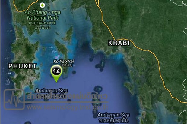 A 4.6 magnitude earthquake struck off the south tip of Koh Yao Yai, Phangnga province early Wednesday, but no casualties or damage was reported.