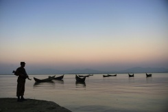 Border Guard Bangladesh personel stand watch for the illegal entry of Myanmar Rohingya refugees on the banks of the Naf River, near Teknaf in southern Cox's Bazar district on Nov 23, 2016.