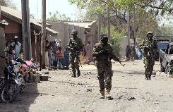 Nigerian troops patrol the streets of the remote northeast town of Baga on April 30, 2013